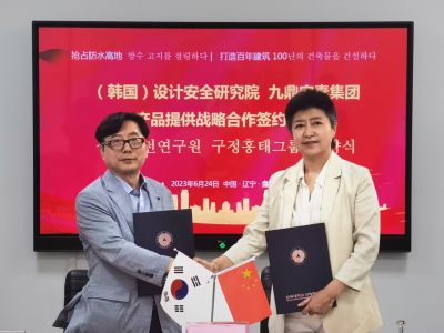 韓國設(shè)計(jì)安全研究院與遼寧九鼎宏泰防水科技有限公司產(chǎn)品提供戰(zhàn)略合作簽約儀式圓滿成功!